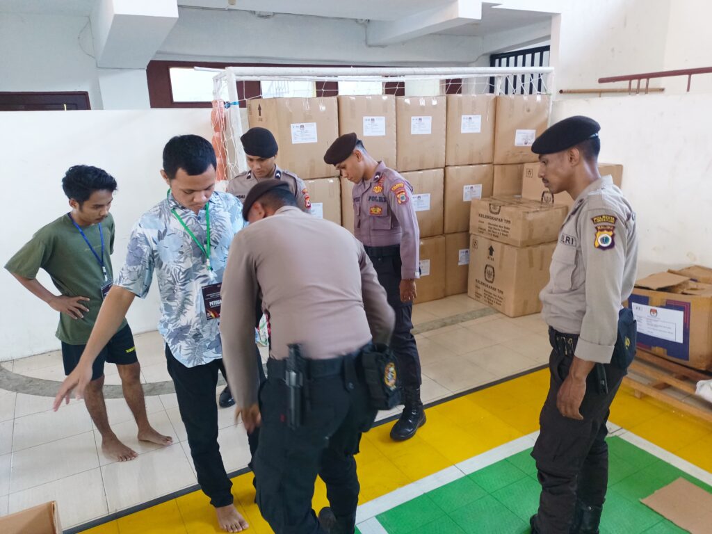 Kepala Bidang Humas Polda Maluku, Kombes Pol Areis Aminnulla S.IK, menegaskan bahwa pengamanan dalam proses sortir dan lipat surat suara ini dilakukan dengan ketat. Setiap orang yang hendak masuk ke area kegiatan harus melewati pemeriksaan secara menyeluruh, guna memastikan keamanan di lokasi tersebut.