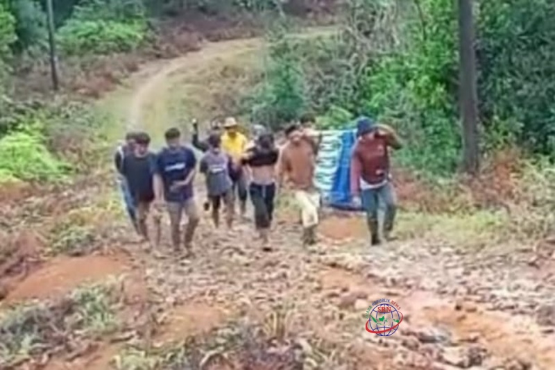 Lebak,Suararepubliknews.com – Lagi-lagi Akibat Akses jalan yang tidak bisa dilalui Oleh kendaraan Roda Empat,Karena Rusak Parah,Hal ini Terjadi Pada Seorang Warga Kp.Cangkeuteuk Desa Wangunjaya,Kecamatan Cigemblong,Lebak. Yang hendak Berobat Karena Sakit Ia Harus Ditandu menggunakan Kain sarung dan sepotong Bambu Menuju Puskesmas Terdekat.