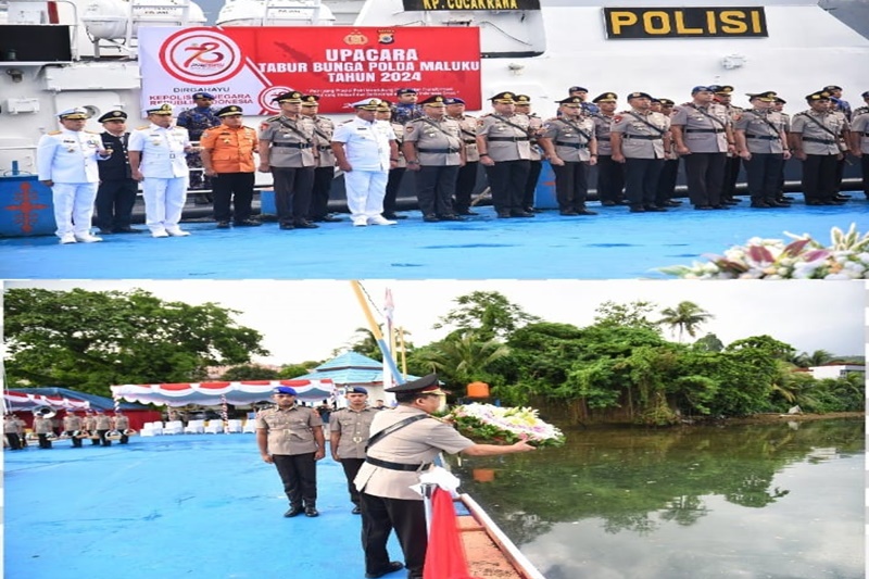 Kapolda Maluku Irjen Lotharia Latif mengatakan, upacara tabur bunga di laut yang dilaksanakan merupakan rangkaian kegiatan peringatan HUT ke-78 Polri.