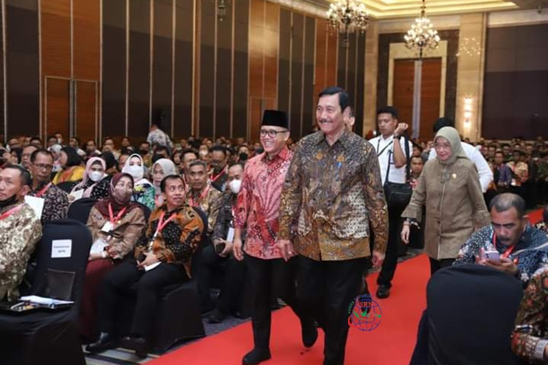 Menko Marves Luhut Binsar Pandjaitan, Bupati Humbahas Dosmar Banjarnahor, SE hadir dalam pertemuan Elektronik (SPBE) Summit 2023 di Jakarta, Senin (20/03)