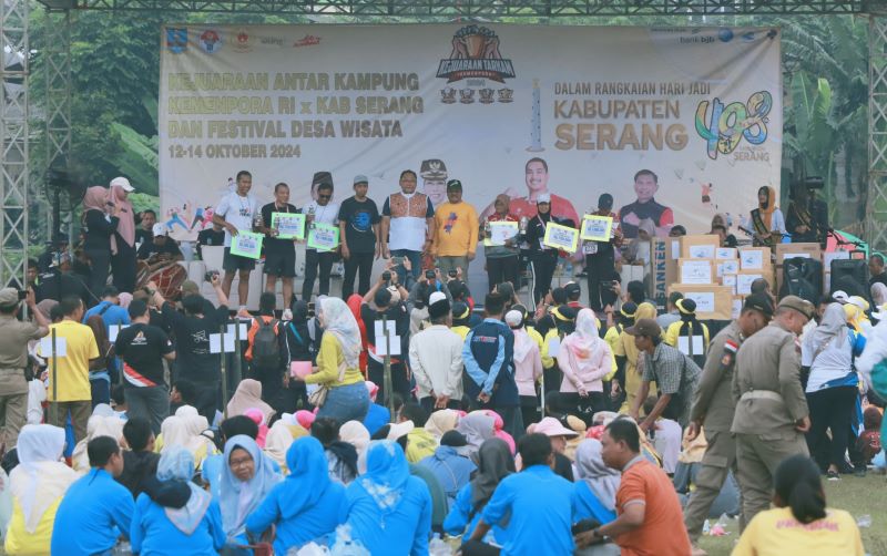 Kejuaraan Antar Kampung (Tarkam) yang memperlombakan olahraga rakyat seperti volley ball dan tenis meja berlangsung dari 12 hingga 13 Oktober 2024. Program ini merupakan inisiatif Presiden Joko Widodo sejak tahun 2023, dengan tujuan menciptakan kompetisi olahraga di level akar rumput, yakni di kabupaten dan kota. Tahun ini, kejuaraan Tarkam berlangsung di 100 titik kabupaten dan kota, termasuk Kabupaten Serang.