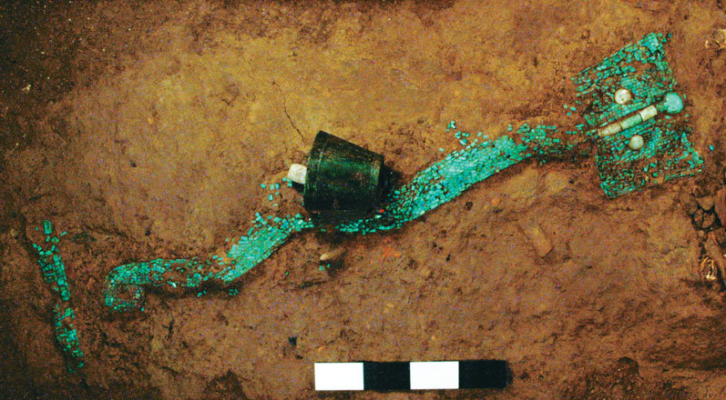 Salah satu yang paling luar biasa adalah artefak yang berbentuk seperti naga Tiongkok, terbuat dari lebih dari 2.000 keping pirus. Artefak yang sangat indah ini ditemukan di makam seorang bangsawan kuno, yang terletak di area istana di situs tersebut. Berukuran sekitar 70 cm, peninggalan berbentuk naga ini unik di antara artefak naga Tiongkok kuno karena ukurannya, pengerjaannya, dan banyaknya potongan kristal pirus yang digunakan, sehingga ia menjadi harta karun nasional Tiongkok.
