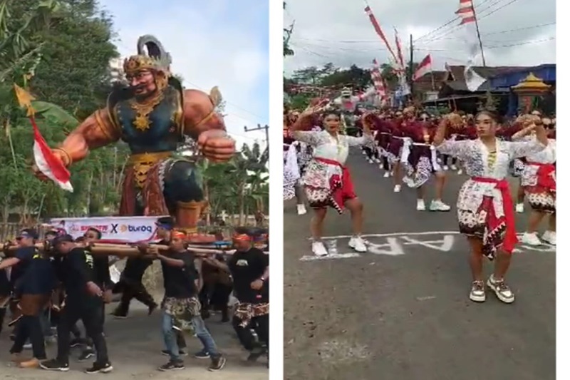 Ogoh – Ogoh dan Senam Kreasi warnai Penutupan PHBN HUT RI 78 di Lapangan depan Balai Desa Kresikan, Minggu (20/08/23).