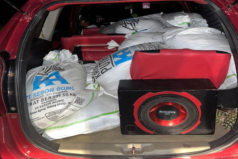 Miras ilegal itu diselundupkan dengan mobil Avanza yang parkir di Jalan Trans Seram, Dusun Mata Empat, Desa Eti, Kecamatan Seram Barat, Kabupaten SBB, Selasa malam (5/8/2025).