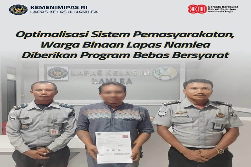 “Dikarenakan kondisi geografis yang tidak mendukung antara Lapas Namlea dan Bapas Ambon yang dibatasi dengan jarak antar pulau maka selama ini kami serahkan warga binaan dengan memanfaatkan teknologi informasi melalui aplikasi Whatsapp. Meskipun tidak bertatap muka langsung, warga binaan tetap diberikan kewajiban wajib lapor dan mendapat pengawasan dari Pembimbing Kemasyarakatan (PK),” lanjutnya.