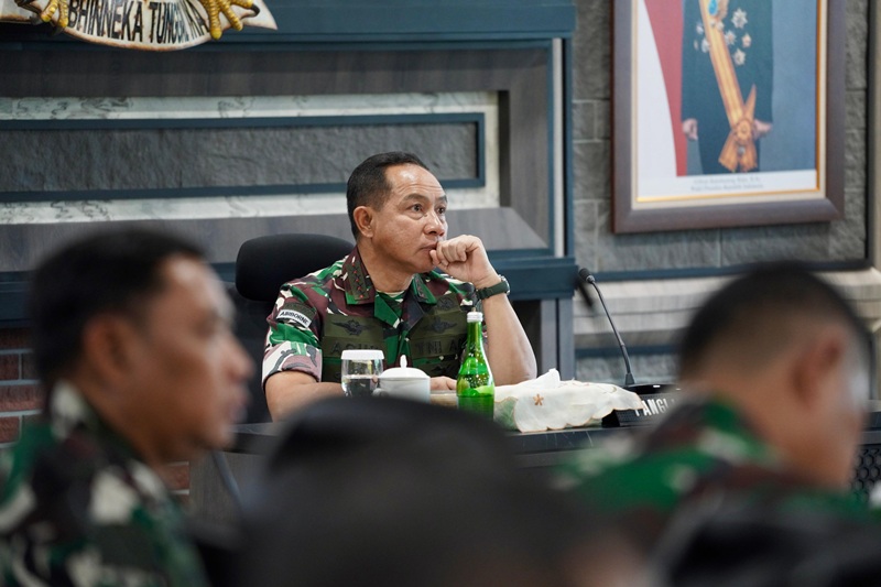 Jakarta, SRN – (Puspen TNI). Panglima TNI Jenderal TNI Agus Subiyanto memberikan pengarahan kepada personel purna tugas kontingen Latihan Bersama (Latma) Pertempuran Kota (Purkota) TNI gelombang I yang baru saja menyelesaikan latihan bersama Angkatan Bersenjata Yordania dan Belarusia, bertempat di Aula Gatot Soebroto, Mabes TNI, Cilangkap. Jakarta Timur. Senin (8/9/2025).