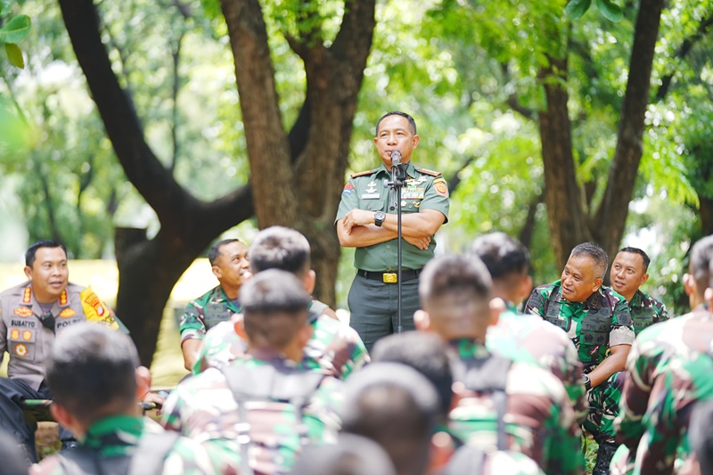 Didepan ratusan prajurit TNI, Panglima TNI menyampaikan bahwa mereka yang melakukan demo bukan musuh kita, kalian hadapi dengan senyum, jangan mudah terprovokasi dan diadu domba antara TNI dengan masyarakat. “Makanya kalian harus sadar jangan mau diadu domba, jangan mau dibenturkan,” tegas Jenderal TNI Agus Subiyanto.