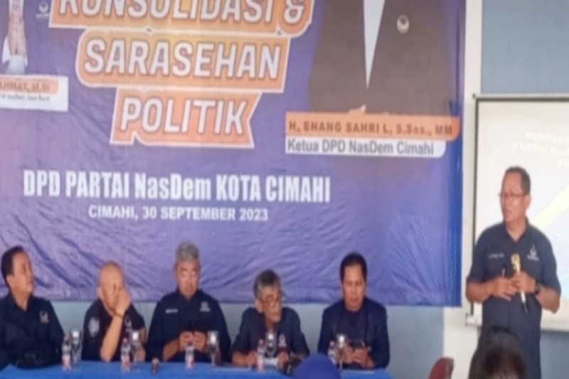 Acara dihadiri seluruh Bacaleg baik untuk Pusat, Jabar, Pemilihan Bandung – Cimah, maupun Kota Cimahi sendiri. Anggota DPRD Kota Cimahi yang juga ketua DPD Nasdem Kota Cimahi Enang Sahri lukmansyah menargetkan ” Kemenangan Partai Nasdem Kota Cimahi , dengan harapan dan cita-cita Nasdem harus meraih kursi di DPRD Kota Cimahi maksimal mencapai 9 kursi. Hal itu dikatakannya sewaktu DPD partai Nasdem Kota Cimahi ” Menggelar Konsolidasi Sarasehan Politik ” bagi anggota bakal Calon legislatif tidak hanya itu saja, kata Enang Nasdem Kota Cimahi harus bisa merangkul relawan relawan Partai Nasdem untuk memenangkan suaranya di pemilu 2024 mendatang.