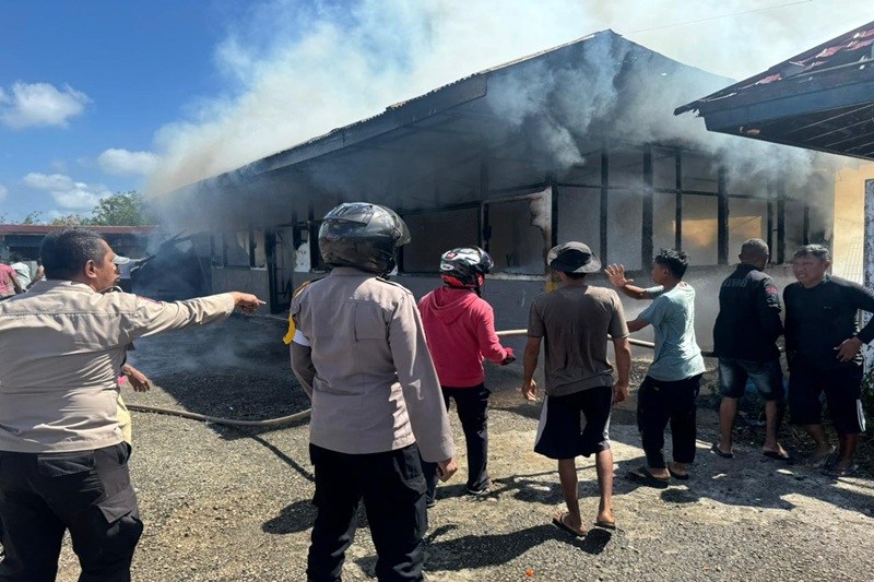 Bangunan yang hangus terbakar yaitu bekas warung nasi berisi makanan umbi-umbian dan sagu, serta bangunan tempat hiburan permainan bilyard berisi 5 meja bilyard ikut.