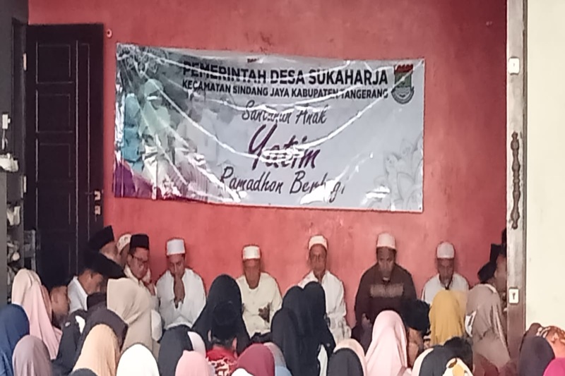 Dalam acara Santunan di hadiri langsung Kepala Desa Sukaharja,H.Mus Mulyadi.SIP.,Sekertaris Desa Sukaharja H.Nana Suryana,Kapolsek Pasar kemis.AKP Muhedi SH.