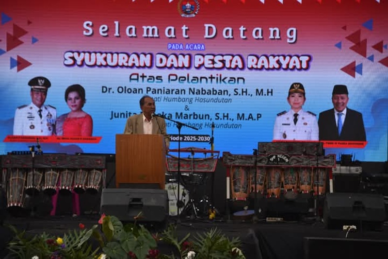 Doloksanggul, SRN – Pemerintah Kabupaten Humbang Hasundutan (Humbahas) menggelar Syukuran dan Pesta Rakyat atas pelantikan Bupati dan Wakil Bupati Humbahas periode 2025-2030 di halaman Kantor Bupati Humbahas Bukit Inspirasi Doloksanggul, Sabtu (22/3/2025).