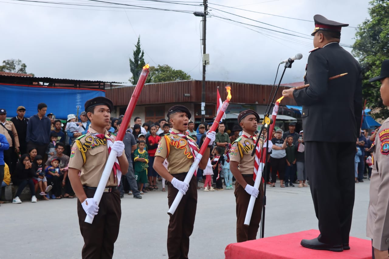 Setelah upacara selesai, Kapolres Humbahas AKBP Hary Ardianto bersama dengan Forkopimda Humbahas melepas pawai obor.