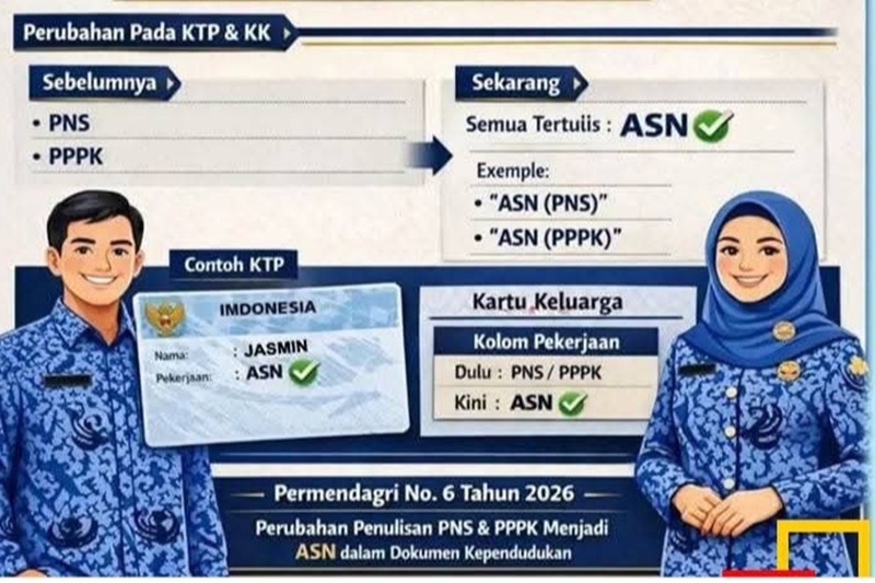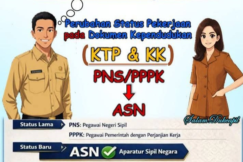Pemerintah dengan Perjanjian Kerja (PPPK) yang merupakan Aparatur Sipil Negara (ASN) untuk segera melakukan perubahan status pekerjaan pada dokumen kependudukan yaitu Kartu Tanda Penduduk (KTP) dan Kartu Keluarga (KK).