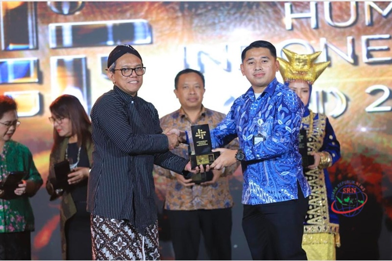 Founder & CEO AHI Asmono Wikan menyerahkan dua penghargaan kepadaPemkot Tangerang yaitu kategori Pelayanan Publik Terinovatif, Laporan Pelayanan Informasi Publik dan Kanal Digital Media Sosial TikTok, di The Rich Hotel, Yogyakarta, Jumat (11/10/24)