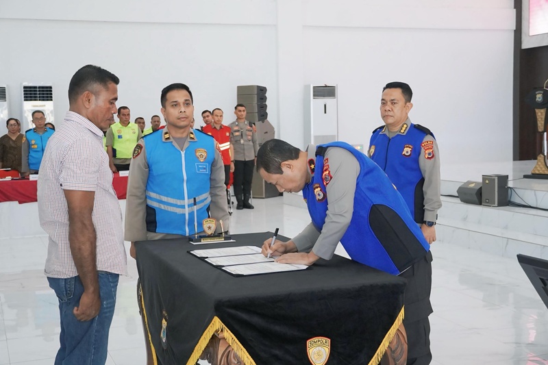 Seleksi penerimaan anggota Polri yang dilaksanakan nanti telah dimulai dari Penandatanganan Pakta Integritas dan Pengambilan Sumpah yang digelar di Gedung Plaza Presisi Manise Polda Maluku, Jumat (7/3/2025).