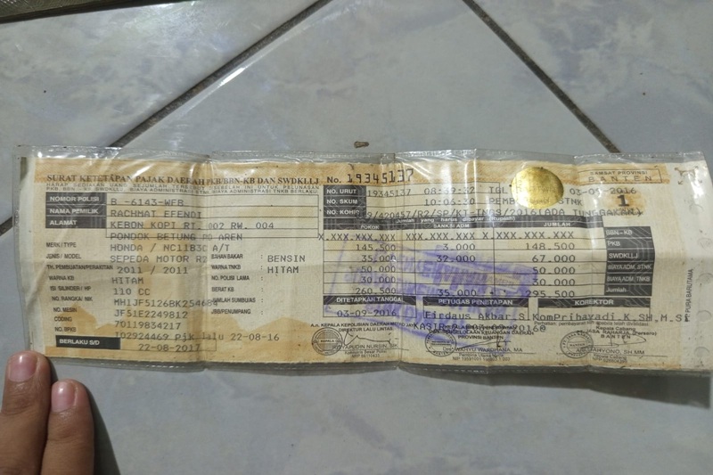 Namun, hanya berselang dua puluh menit kemudian, sekitar pukul 14.50 WIB, pandangan korban teralihkan oleh dua orang asing yang berhenti di dekat motornya.