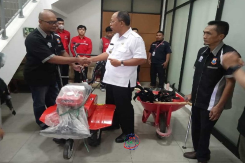 Cimahi, Suararepubliknews.com – PJ Walikota Cimahi Dikdik Suratno Nugrahawan saat menyerahkan bantuan traktor kepada Ketua PPDI Mochamad Taufik, . (CIMAHI).- PJ Walikota Dikdik Suratno Nugrahawan atas nama Pemerintah Kota Cimahi memberikan bantuan kepada kaum Disabilitas sebuah traktor pertanian dan roda bak sampah, di kantor Walikota Cimahi, Rabu (3/5/2023).