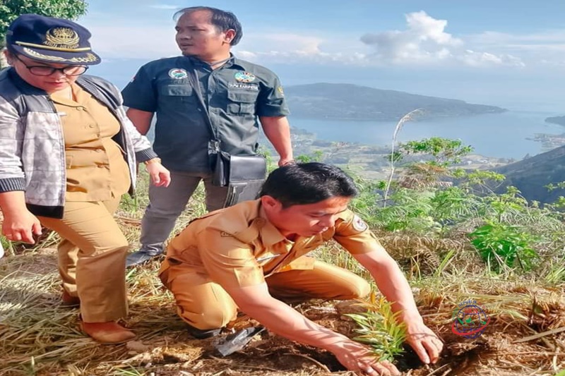 Gerakan penanaman pohon dilakukan Seketaris Dinas PMDP2A Saut Sitinjak, Kabid Pemberdayaan Masyarakat dan Lembaga Resva Panjaitan, Kades Pearung Hisar B Siregar ST, Kepala BPD Desa Pearung Seter L Siregar, perangkat Desa Pearung, Senin (20/3).