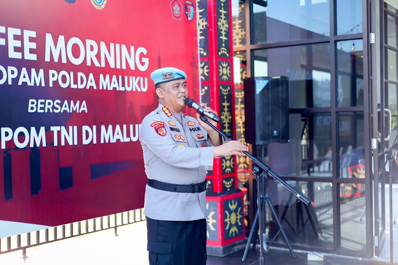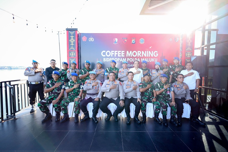 MALUKU, SRN — Sinergitas TNI-Polri kembali diperkuat di Maluku. Polda Maluku melalui Bidang Profesi dan Pengamanan (Bidpropam) menggelar coffee morning bersama jajaran Polisi Militer (POM) TNI dari tiga matra sebagai langkah konsolidasi pengawasan disiplin dan penegakan hukum internal aparat.