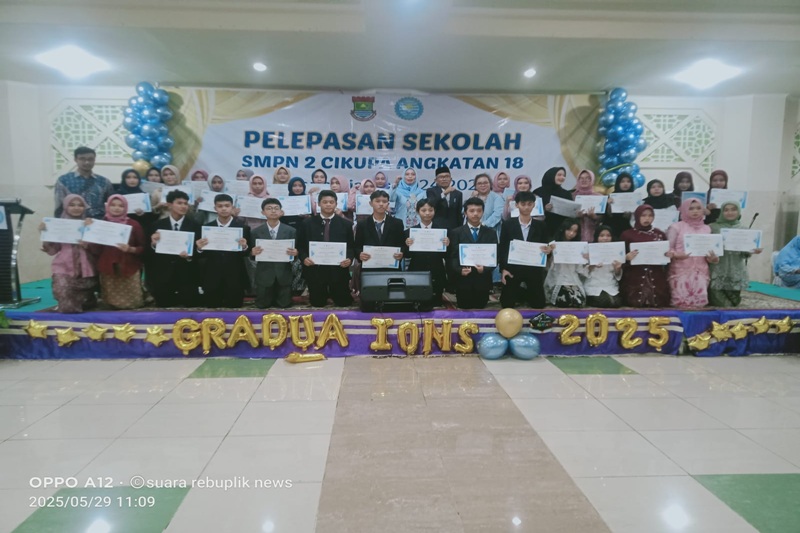 Tangerang, Suararepubliknews – Kepala Sekolah SMPN 2 Cikupa, Muhamad Fahri, S.Pd., S.H.I., melepas 435 siswa-siswi angkatan 18 tahun ajaran 2024/2025 dalam acara perpisahan yang digelar di Aula Masjid Al-Amjad Tiga Raksa.