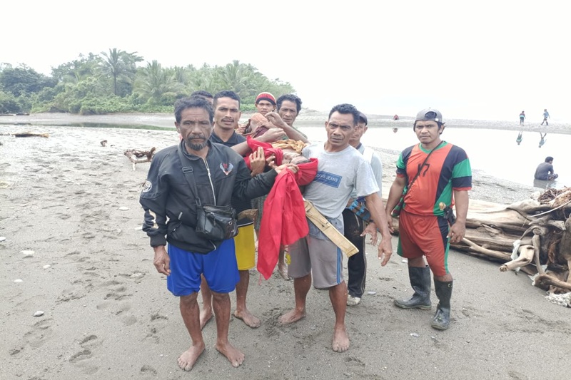 Personel Polsek Waesama dan Warga Berhasil Temukan Korban Meninggal Diterkam Buaya