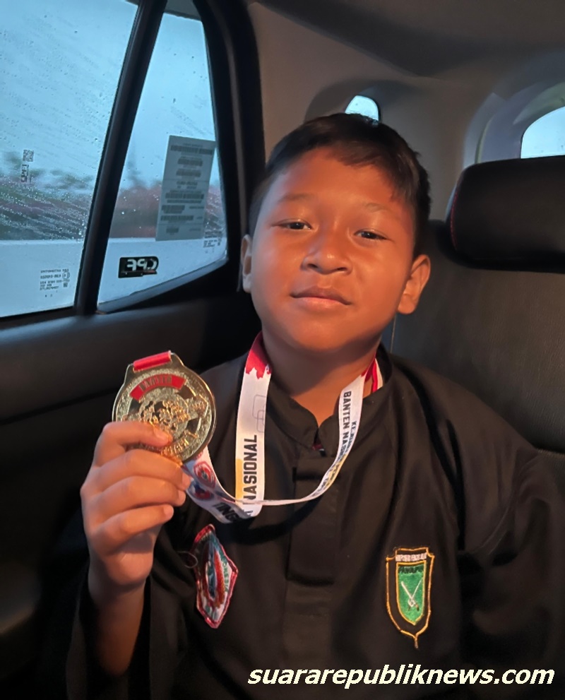Salman Alfariz, seorang siswa dari SDN 01 Benda Baru, Pamulang, tampil gemilang dalam Kejuaraan Pencak Silat Banten Nasional Open Cup 2024