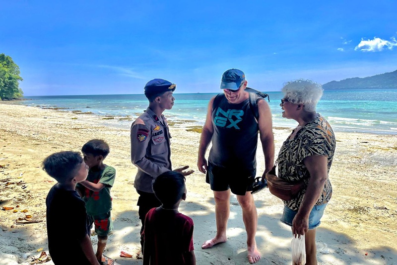Selain melaksanakan pengawasan, personel Polairud juga menyapa pengunjung tempat wisata sekaligus menyampaikan pesan-pesan kamtibmas.