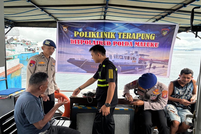 MALUKU- Kepolisian Daerah Maluku melalui Crew KP. XVI – 2012 Direktorat Polairud Polda Maluku bersama Bidang Dokkes Polda Maluku melaksanakan kegiatan klinik terapung, atau pemeriksaan kesehatan masyarakat secara gratis.