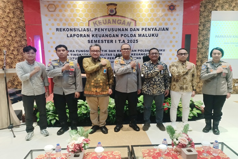 MALUKU- Kepolisian Daerah Maluku menggelar kegiatan rekonsiliasi penyusunan dan penyajian laporan keuangan semester I tahun 2025 bersama Polres Jajaran.