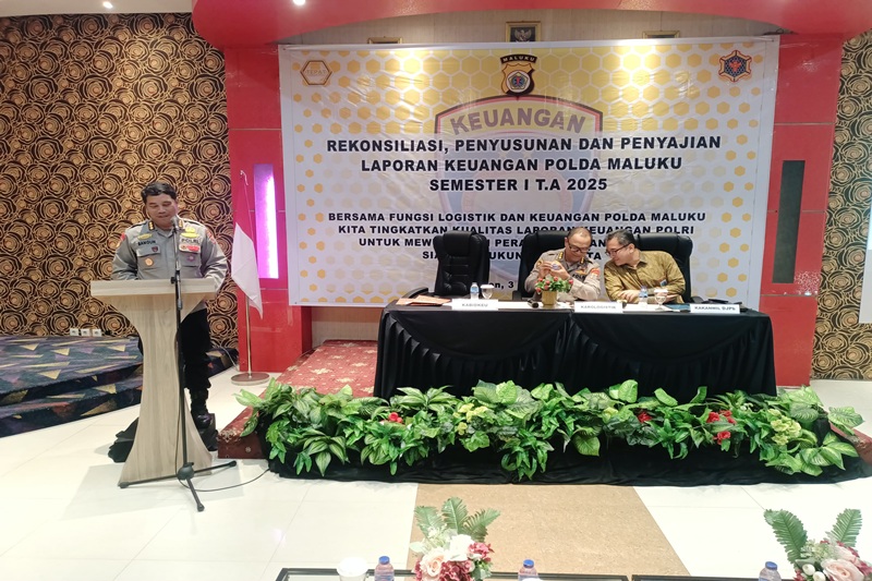 MALUKU- Kepolisian Daerah Maluku menggelar kegiatan rekonsiliasi penyusunan dan penyajian laporan keuangan semester I tahun 2025 bersama Polres Jajaran.
