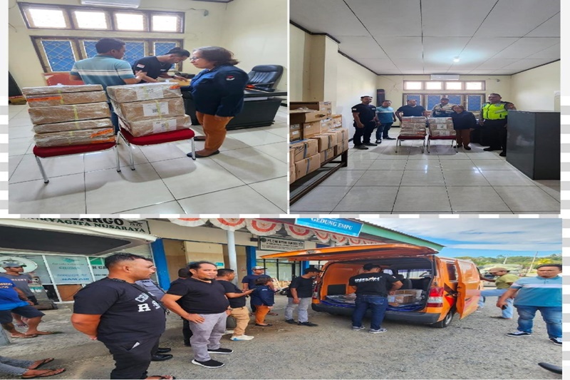 AMBON.SuaraRepublikNews.com.-POLDAMALUKU- Tim satgas preventif Operasi Mantap Brata (OMB) Salawaku Polda Maluku mengamankan kedatangan surat suara Presiden – Wakil Presiden RI di Bandara Internasional Pattimura, Kota Ambon, Sabtu (27/1/2024).