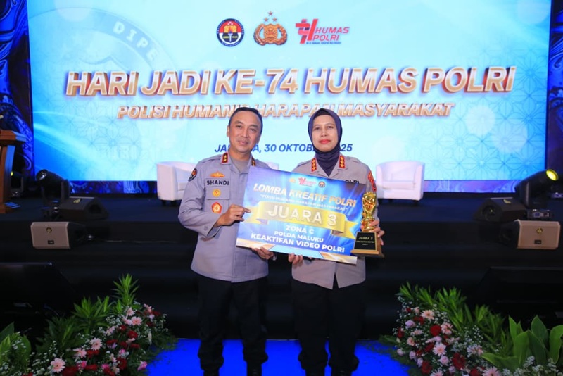 MALUKU– Kepolisian Daerah (Polda) Maluku kembali mengukir prestasi pada perayaan HUT Humas Polri ke-74, Dalam penilaian SPIT (Sistem Pengelolaan Informasi Terpadu) dan Lomba Kreatif Polri 2025, Polda Maluku berhasil meraih Juara 1 Zona C kategori SPIT dan Juara 3 Zona C kategori Keaktifan Video Polri.