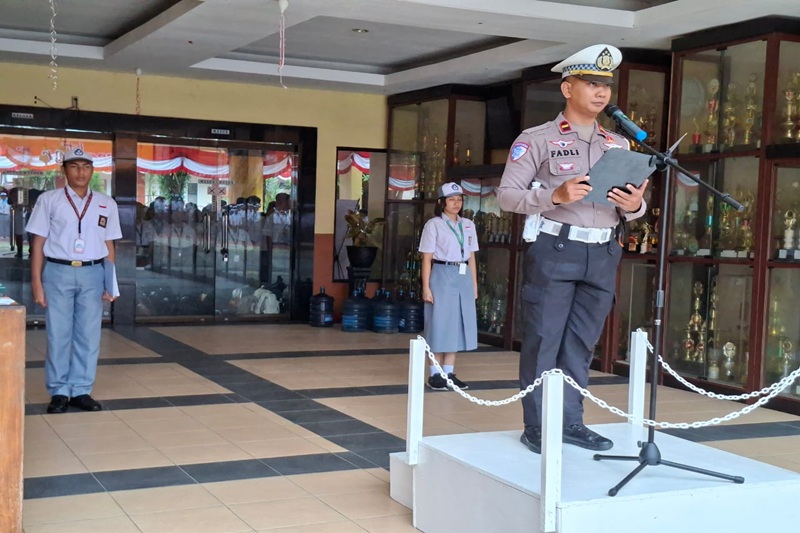 MALUKU- Kepolisian Daerah Maluku melalui Direktorat Lalulintas menyambangi Sekolah Menengah Atas Negeri (SMAN) 1 dan SMAN 5 Ambon untuk menyampaikan pesan terkait pentingnya keselamatan dalam berlalulintas kepada para siswa/i.