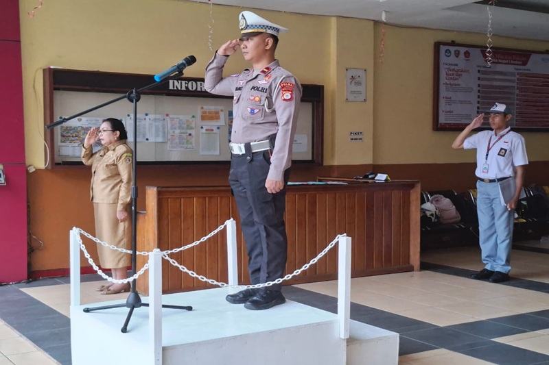 Sosialisasi tentang pentingnya keselamatan berlalulintas diawali dengan pelaksanaan Upacara. Bertindak sebagai Pembina Upacara yaitu Para Perwira Ditlantas Polda Maluku.