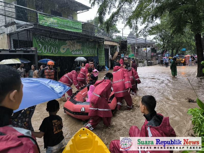 Sukabumi, suararepubliknews.com – POLRESSUKABUMI, Bencana banjir yang melanda Kecamatan Palabuhanratu, Kabupaten Sukabumi, pada Rabu (04/12/2024), menjadi ujian tanggap darurat bagi Polres Sukabumi. Hujan deras yang terus mengguyur sejak Senin (02/12/2024) hingga malam hari pukul 23.00 WIB, mengakibatkan genangan air dengan ketinggian mencapai 20-80 cm. Tak hanya itu, longsor dan pohon tumbang juga menambah parah situasi di wilayah tersebut.