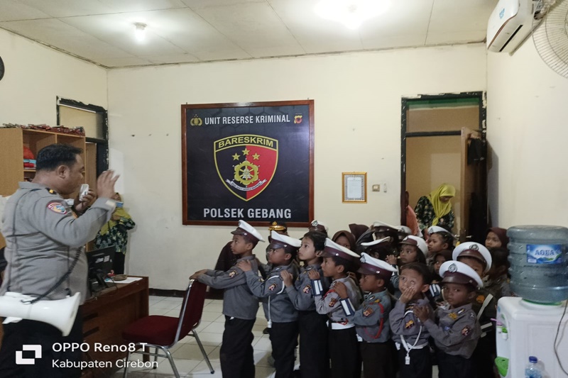 Anak sekolah RA Salam Al Farisi dengan jumlah siswa yang mengikuti kunjungan sekitar 30 anak ini yang di dampingi masing masing orang tua murid di terima Polsek gebang dengan pintu terbuka lebar kemudian Kanit BINMAS IPDA ADE DERMAWAN mengajak anak anak untuk mengetahui ruangan ruangan dan pungsi kepolisian kepada nakan sekolah RA Salman Al farisi.