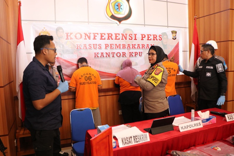 Buru, Suararepubliknews – Jajaran Polres Buru dibawa pimpikan Kapolres, AKBP. Sulastri Sukidjang, SH, S.I.K, MM, berhasil mengungkap dalang dan pelaku pembakaran kantor KPU Buru, pada tanggal 28 Februari 2025 lalu, yakni; bendahara KPU inisial RH (48), mantan Komisioner PPK Fenaleisela inisial SB (45), dan AT (42).