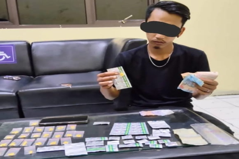“Saat dilakukan pengamanan dan penggeledahan terhadap pelaku, petugas menemukan sejumlah barang bukti berupa 51 butir obat jenis tramadol HCl, 95 butir obat jenis heximer, uang tunai hasil penjualan sebesar Rp152.000, satu buah tas selempang warna hitam, serta satu unit handphone merek Vivo warna biru dongker,” ujar AKP Epi, Kamis (4/12/2025).