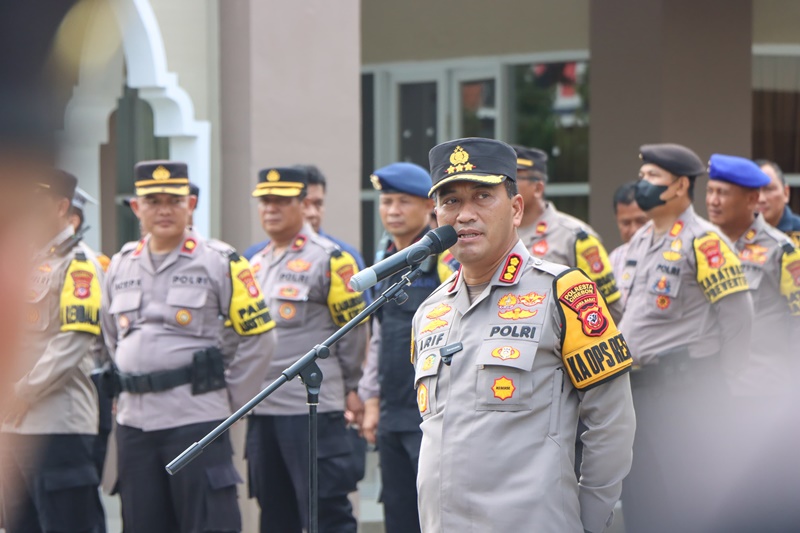 Kapolresta Cirebon KOMBES POL ARIF BUDIMAN, S.I.K., M.H, didampingi Wakapolresta Cirebon AKBP DEDY DARMAWANSYAH, S.I.K., S.H., M.H. Pimpin Pengamanan mengamankan kampanye Calon Presiden RI, Ganjar Pranowo, di Kampus 2 UMC, Jumat (8/12/2023).