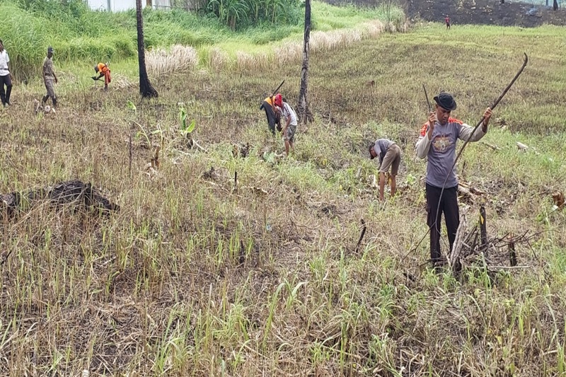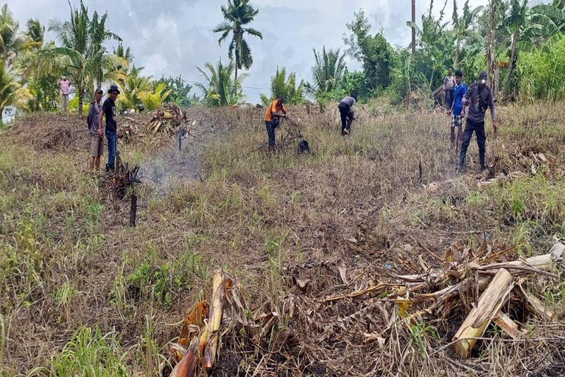 Polsek Nirunmas Bersama Pemdes Waturu Bersihkan Lahan 1 Hektare, Siap Tanam Jagung Hibrida