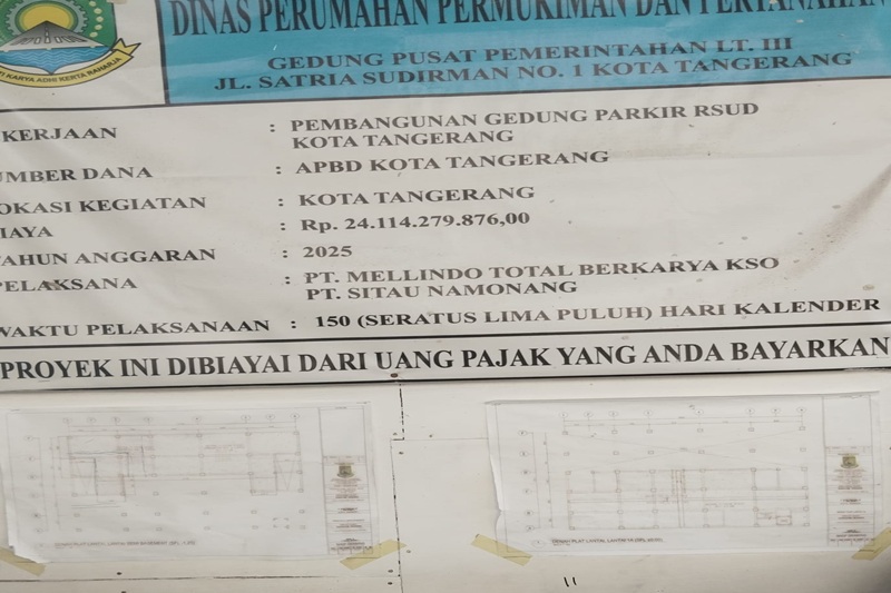 Tidak berhenti di situ, proyek Pembangunan Gedung Parkir RSUD Kota Tangerang pada tahun 2025 dengan nilai Rp24,11 miliar turut disorot. Dalam pelaksanaan fisik proyek tersebut, tidak ditemukan informasi mengenai keberadaan PBG, sehingga memunculkan tanda tanya besar terkait legalitas dan kepatuhan terhadap aturan pembangunan.