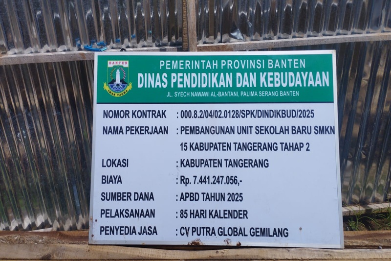 Pantauan tim di lapangan pada Selasa 16 Desember 2025 memperlihatkan kondisi di lokasi, yakni pembangunan USB SMKN 15 Kabupaten Tangerang yang terletak di Perumnas Suradita, Kelurahan Suradita Kecamatan Cisauk.