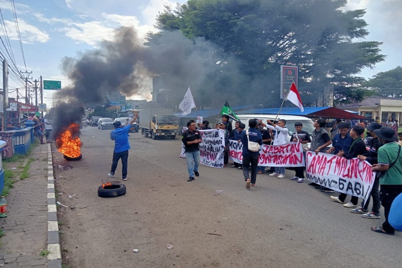 Lebak, Suara Republik News – Puluhan mahasiswa dan pemuda di Kecamatan Malingping, Kabupaten Lebak, menggelar aksi unjuk rasa di depan Kantor Kecamatan Malingping, pada Jumat (28/2/2025). Aksi itu merupakan koalisi organisasi yang ada di Wilayah Lebak Selatan, diantaranya, Himakom UNMA Banten, AMBAS, KNPI Malingping, Pokrol Bambu, HMI dan GMNI.