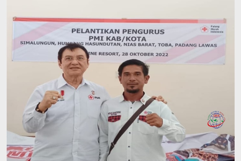 Ketua PMI Sumut DR. H. Rahmat Shah melantik jajaran pengurus dan anggota PMI Kabupaten Humbang Hasundutan masa bakti 2022 -2027, di Aula Aekna Pine Resort, Kabupaten Simalungun, Sebagai Ketua PMI Kabupaten Humbang Hasundutan Samudera awil condo Sihotang, SH
