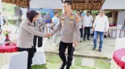 Tiba di depan pintu utama Mapolda Maluku, Kapolda dan Ketua Bhayangkari menerima pengalungan bunga dan buket bunga dari Irjen Pol. Drs. Eddy Sumitro Tambunan, M.Si bersama Istri.
