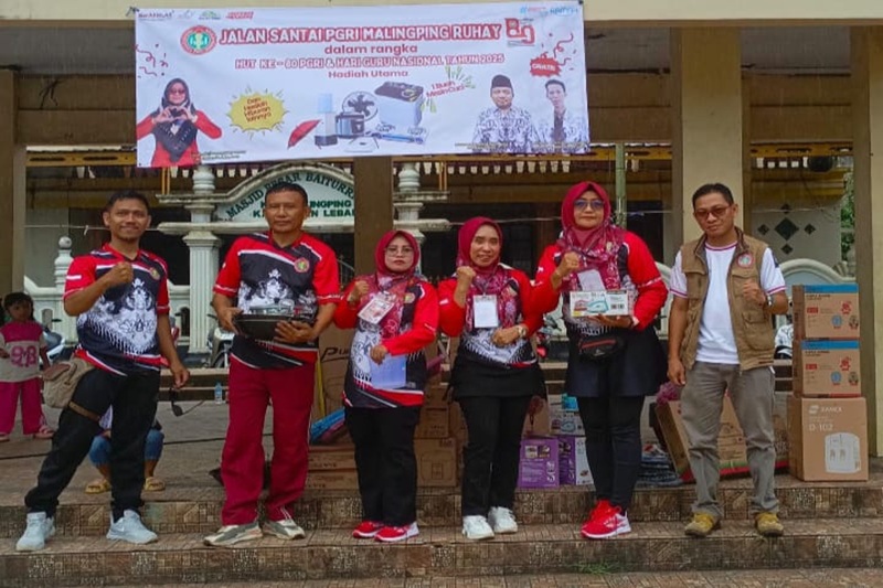 Kegiatan Jalan Santai yang diikuti oleh guru dan masyarakat umum ini mencapai puncaknya dengan pembagian hadiah yang disediakan oleh panitia di alun-alun Malingping pada Minggu pagi (23/11/2025).