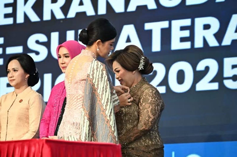 Sebelumnya Kahiyang Ayu melantik serta menyematkan pin kepada Katua TP PKK, Ketua Tim Pembina Posyandu dan Ketua Dekranasda Kabupaten/Kota se-Sumut Periode 2025-2030.