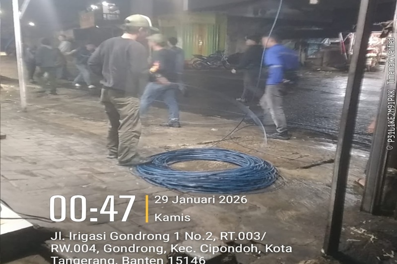 Kota Tangerang — Suararepubliknews. Com Dugaan pemasangan kabel jaringan WiFi/fiber optik sepanjang kurang lebih 3.000 meter di wilayah Kelurahan Gondrong, Kecamatan Cipondoh, kembali menuai sorotan publik. Pemasangan yang dilakukan pada Kamis (29/1/2026) sekitar pukul 00.47 WIB dini hari tersebut diduga melanggar Peraturan Daerah (Perda) Kota Tangerang Nomor 8 Tahun 2018 tentang Ketentraman, Ketertiban Umum, dan Perlindungan Masyarakat (Tibumtranmas),