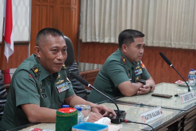 Staf Ahli (Sahli) Pangdam IV/Diponegoro Kolonel Czi Eko Budianto. P. S.Sos., M.I.P. Ketua Tim beserta Kolonel Inf Puguh Suwito, S.I.P., M.I.P. anggota, kunjungi Makorem 071/Wijayakusuma, Sokaraja, Banyumas. Selasa (24/10/2023).