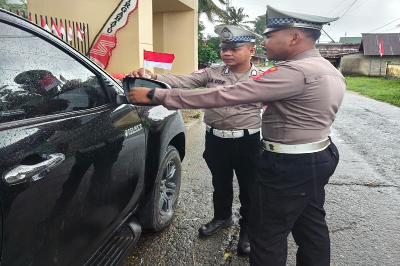 Sambut HUT RI ke-80, Sat Lantas Polres Buru Selatan Bagikan Bendera Merah Putih Kepada Pengendara Bermotor